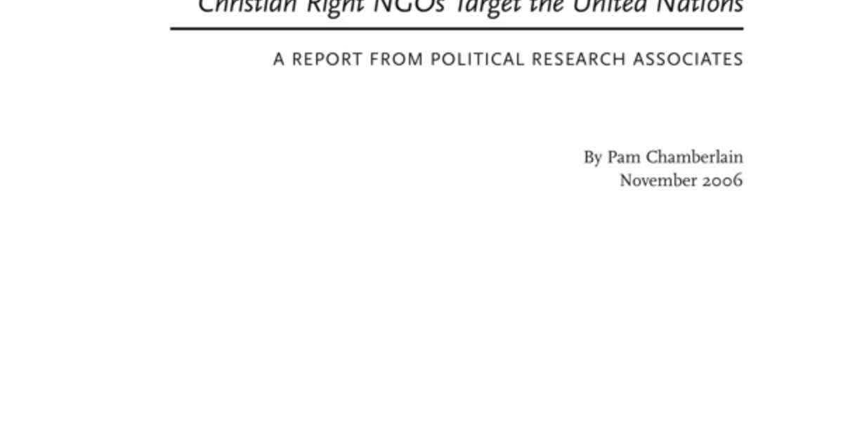 In her investigation, Pam Chamberlain profiles how Christian Right groups have attained “consultative” status in UN deliberation, which they wield to oppose women’s right to control their reproductive lives. They have succeeded in publicizing their frame that the right to life is a basic human right and that advocates for abortion access and reproductive health are calling for illegitimate, special rights.
