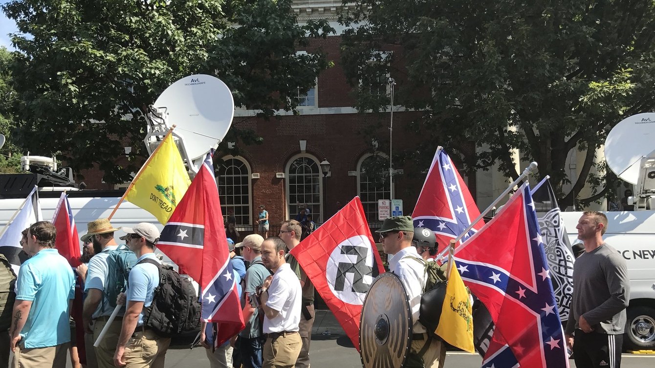 “The truth is the American media, and the American political system, and the American Federal Reserve, is dominated by a tiny minority: the Jewish Zionist cause.” Addressing another group, Richard Spencer mocked Charlottesville’s Jewish mayor, Mike Signer. “Little Mayor Signer—‘See-ner’—how do you pronounce this little creep’s name?” Spencer asked. The crowd responded by chanting, “Jew, Jew, Jew.”