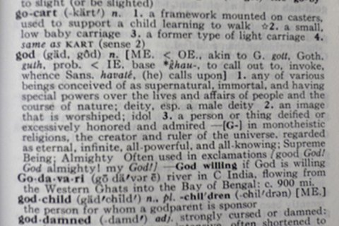 What does the word “God” mean? Anything and everything, depending on whether you’re a Bible-believer or an atheist, a rap artist or a writer for South Park, a peyote-eater or Meg Ryan in a diner…