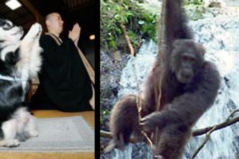 A praying dog at a Japanese temple, chimpanzees expressing awe at a waterfall: can our animal cousins be religious?