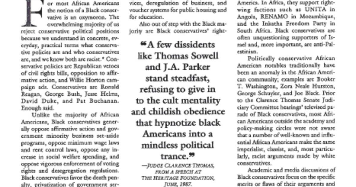 For most African Americans the notion of a Black conservative is an oxymoron. The overwhelming majority of us reject conservative political positions.
