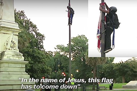 As she scaled the flagpole on the state capital grounds in Columbia, South Carolina this morning to remove the Confederate flag, Bree Newsome recited Psalm 27 (“the Lord is my light and my salvation…