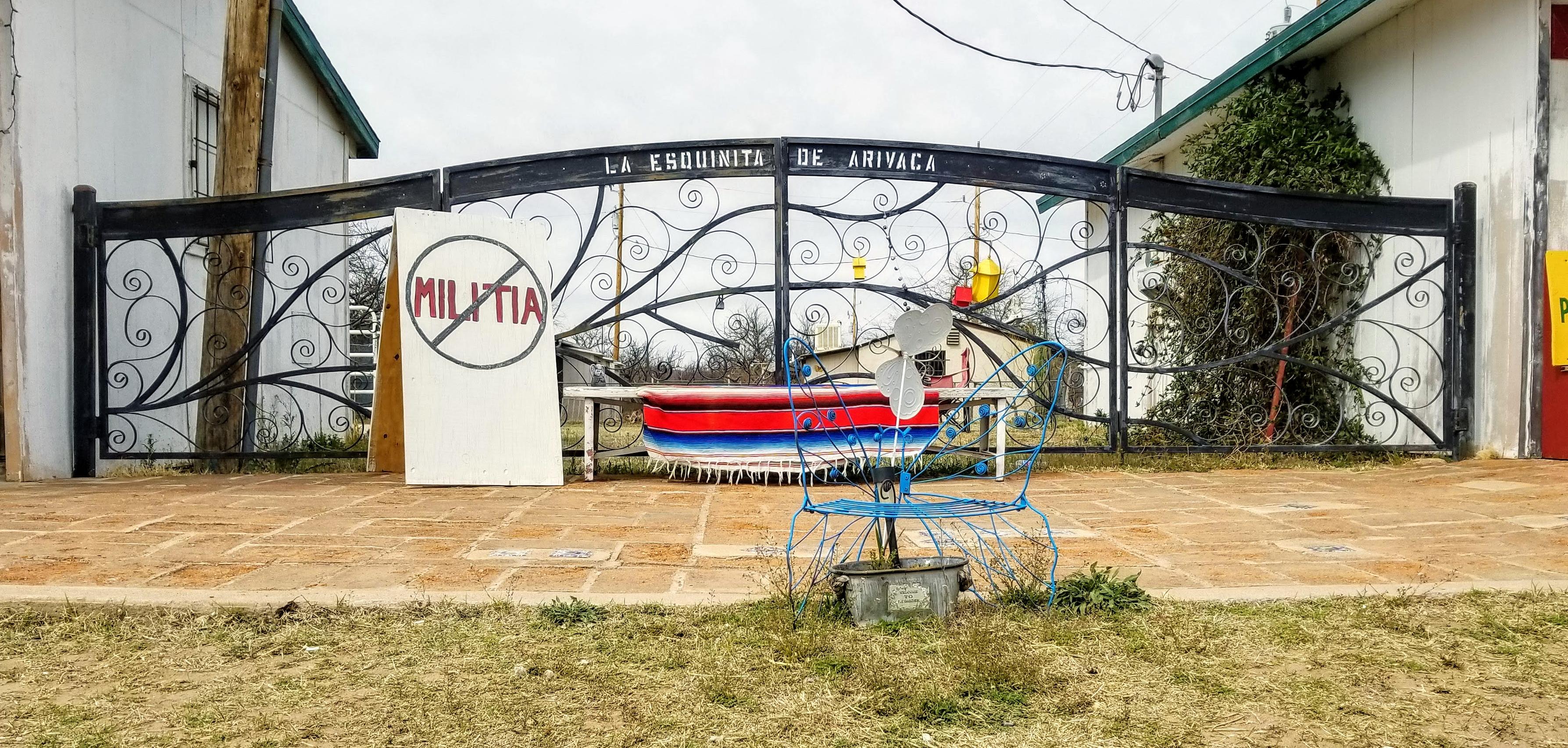In February 2019, Patriot Movement AZ showed up in town, filmed several businesses and homes, and knocked on the door of the then-empty humanitarian aid office. The group later posted the video of the town on Facebook, claiming to have gone “incognito” to “check in on this humanitarian aid place and see what we can find out.” One woman complained that Arivaca doesn’t “allow any type of militia.” She added, “They don’t like Border Patrol.”